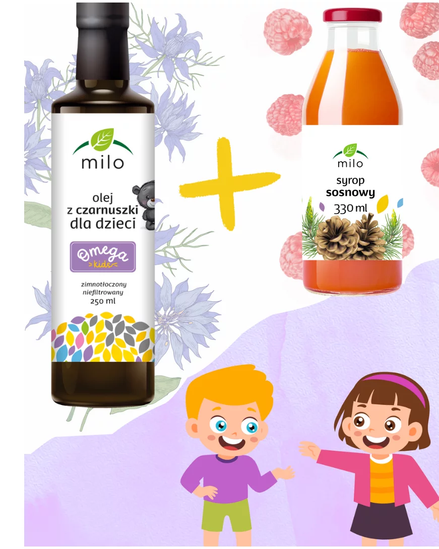 Zestaw Olej z czarnuszki dla dzieci & Syrop sosnowy to naturalny sposób, by zadbać o codzienną dietę Twojego dziecka w smaczny i prosty sposób.